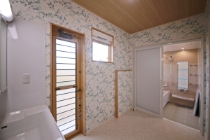 リビングの奥に4.5帖の畳スペース、キッチン脇に主寝室を配置した、1階だけでも生活できる間取構成。