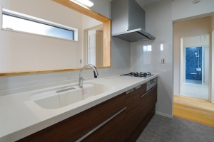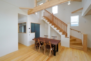 広がりと開放感のあるM様邸は、住まいの中央にキッチンを配し、