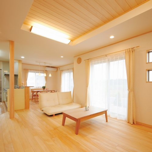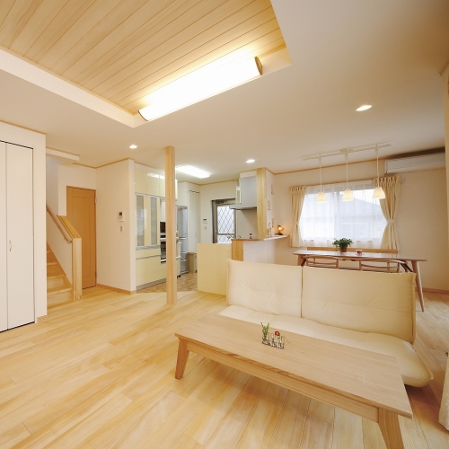 もみの木 パイン材 自然素材 健康住宅 オール電化 光触媒 リビング階段 勾配天井 折上天井 外観デザイン 内装デザイン